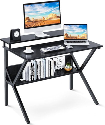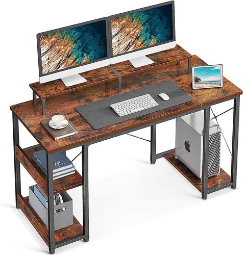 1. ODK Computer Desk with Monitor Shelf and Storage Shelves