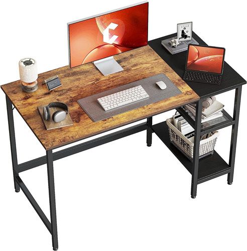 The CubiCubi home computer desk is a perfect blend of fashion and function, featuring a unique splice board and 2-tier open shelves design. This not only adds to its stylish appeal but also provides ample space for under-desk storage and organization.