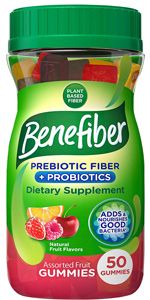 Looking for a fiber gummy that also contains probiotics? Benefiber Prebiotic Fiber Supplement Gummies may be perfect for you. The prebiotic fiber in these gummies helps stimulate the growth of good bacteria, while the probiotics add healthy bacteria to your GI system. They're also gluten-free, tasty, and easy to consume in gummy form.