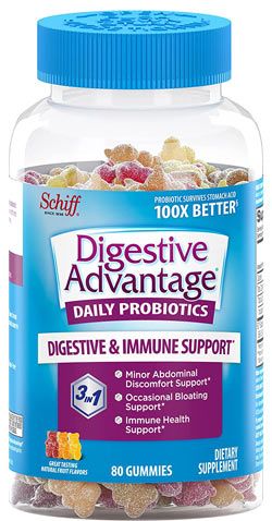 Best of all, The natural protein shell of the probiotics helps them survive stomach acid 100x better than those found in yogurt, this means that more good bacteria can reach your gut, where it can do its job. Digestive Advantage Probiotic Gummies This product is designed to provide targeted relief for minor abdominal discomfort, occasional bloating, and occasionally diarrhea. They’re easy to take on the go.